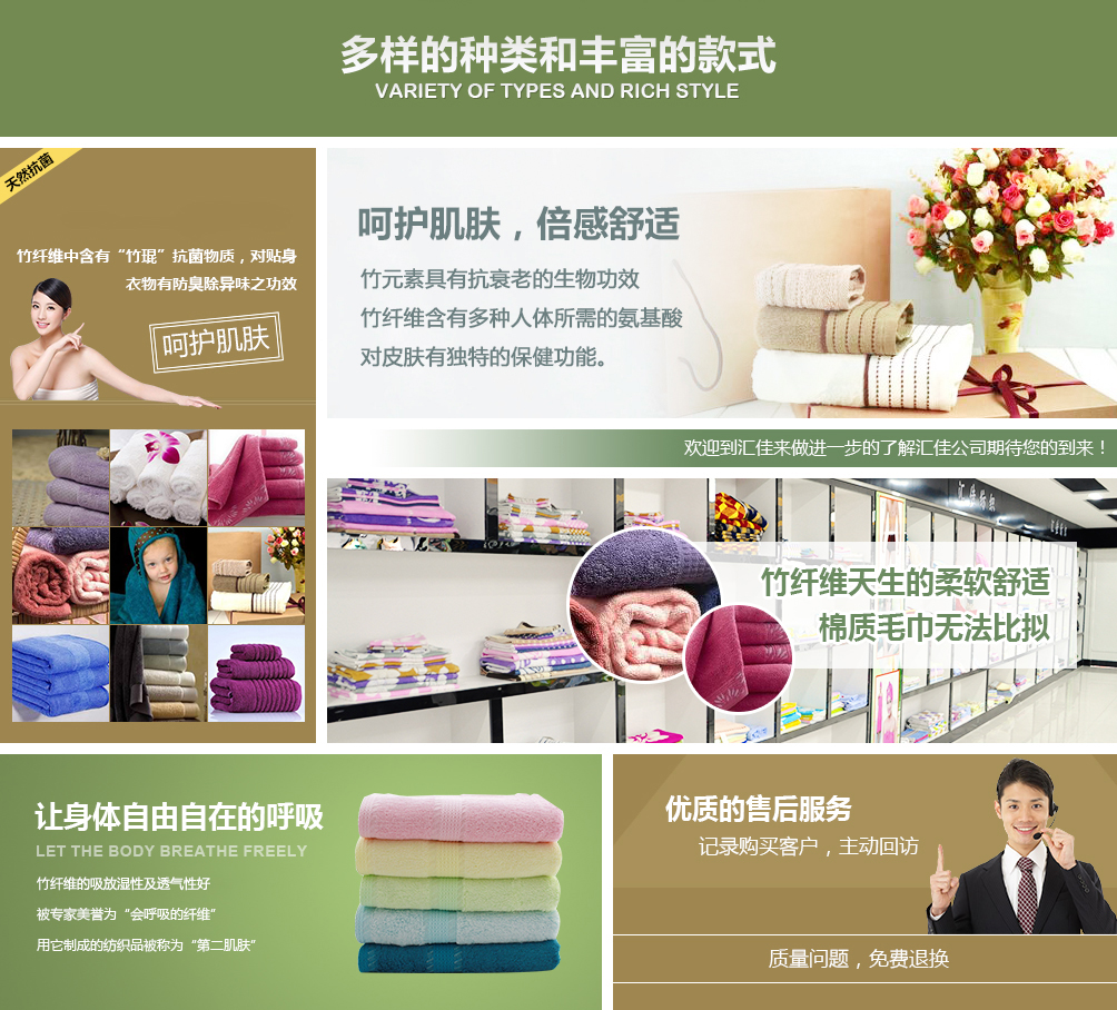 公司自2009年成立以來,一直致力于開發綠色環保產品,建有自己的科研和生產基地,擁有生產設備200多臺,生產員工200多人。公司品牌“竹之意”產品主要涵蓋竹纖維毛巾、襪子、內衣褲、服飾、床品,竹炭制品,活性炭雕等十大系列600多個品種。公司研發生產的竹纖維、竹炭制品均具有綠色環保、天然保健、柔軟舒適等優點,順應了現代都市人追求健康....【更多】